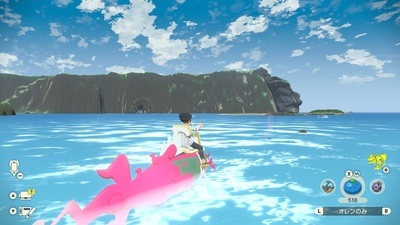 結局タイサイさんはあれ以上話してくれなかったのでストレス発散のため海にやってきました。あそこに何かいる!オレンの実を投げてみましょう。