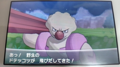 そんな素敵な道、18番道路で最初に出会ったのはドテッコツ!お仕事お疲れ様です!…と言いたくなります。